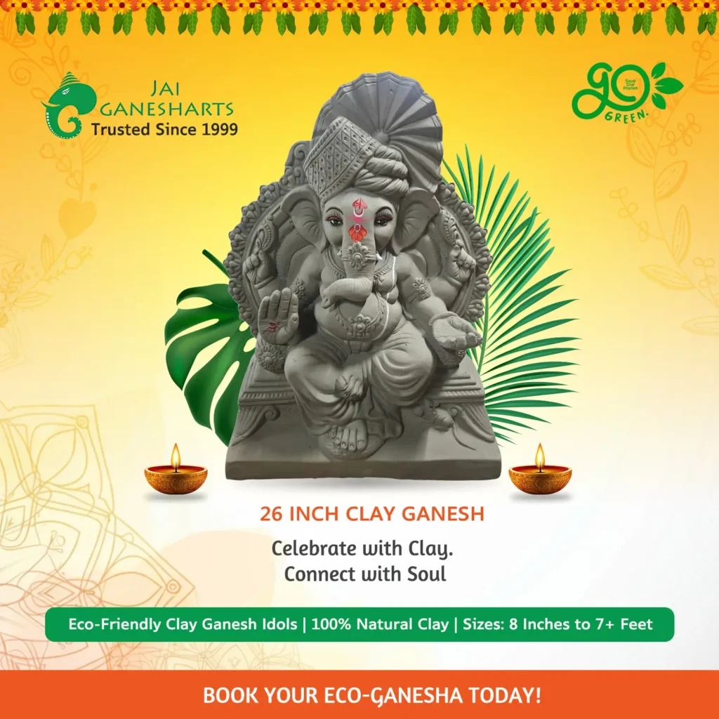 Jai ganesh arts makes eco friendly ganesha.Good work and making knowledgeble step for clean idols wich are on best qualities and also reasonable prices. Happy and value of rupee. ..🤗🤗🤗