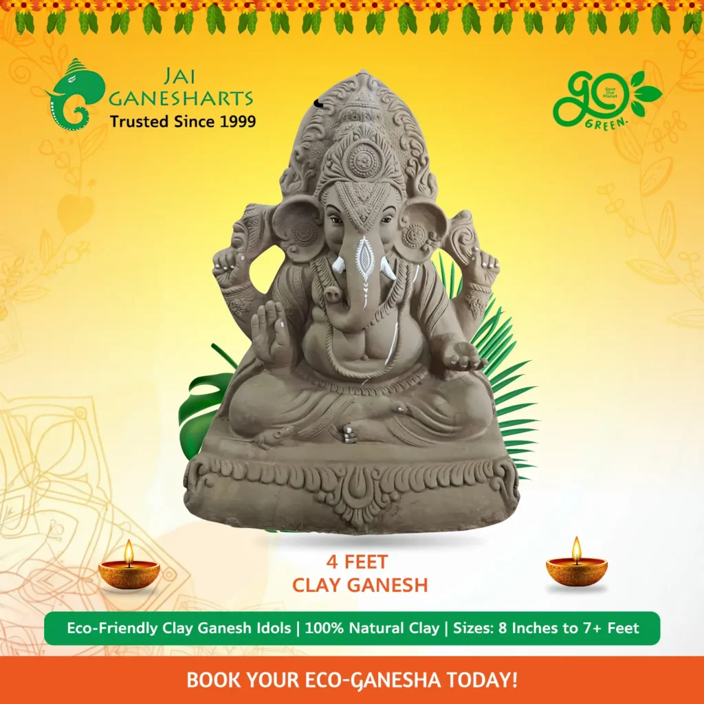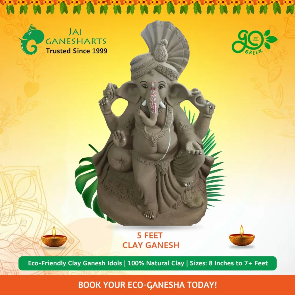 Clay Ganesh idols are preferred by many devotees who want to celebrate Ganesh Chaturthi in a green way and avoid polluting the water bodies and the environment with non-biodegradable materials like plaster of paris, plastic, metal, etc.
